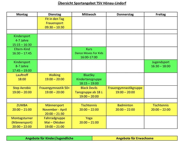 Der TSV bietet ein vielseitiges Sportangebot mit verschiedenen Sportgruppen. Bei Interesse wendet euch bitte an die jeweiligen Übungsleiter.